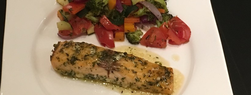 Lachs mit Honigkräuterglasur und Ofengemüse
